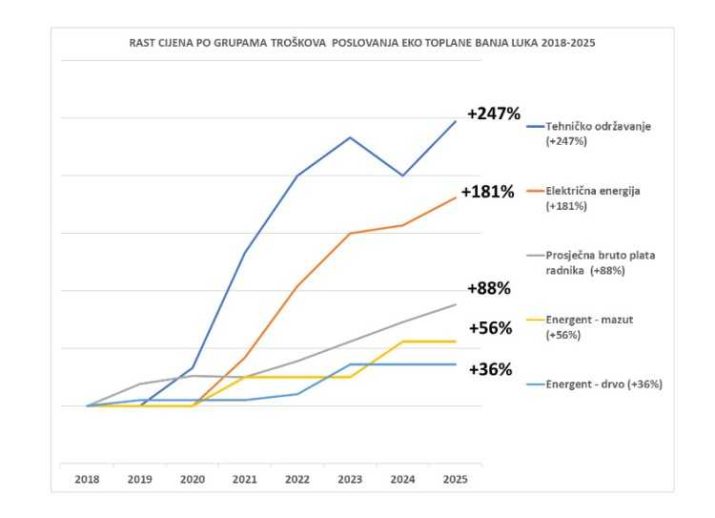 Uz to, kako dodaju, troškovi električne energije porasli su za 181 odsto, a troškovi glavnog energenta za 36 odsto. Troškovi održavanja distributivne mreže, ističu, povećani su za čak 247 odsto, uz dodatnih 15,7 miliona KM uloženih iznad prvobitno planiranih sredstava.