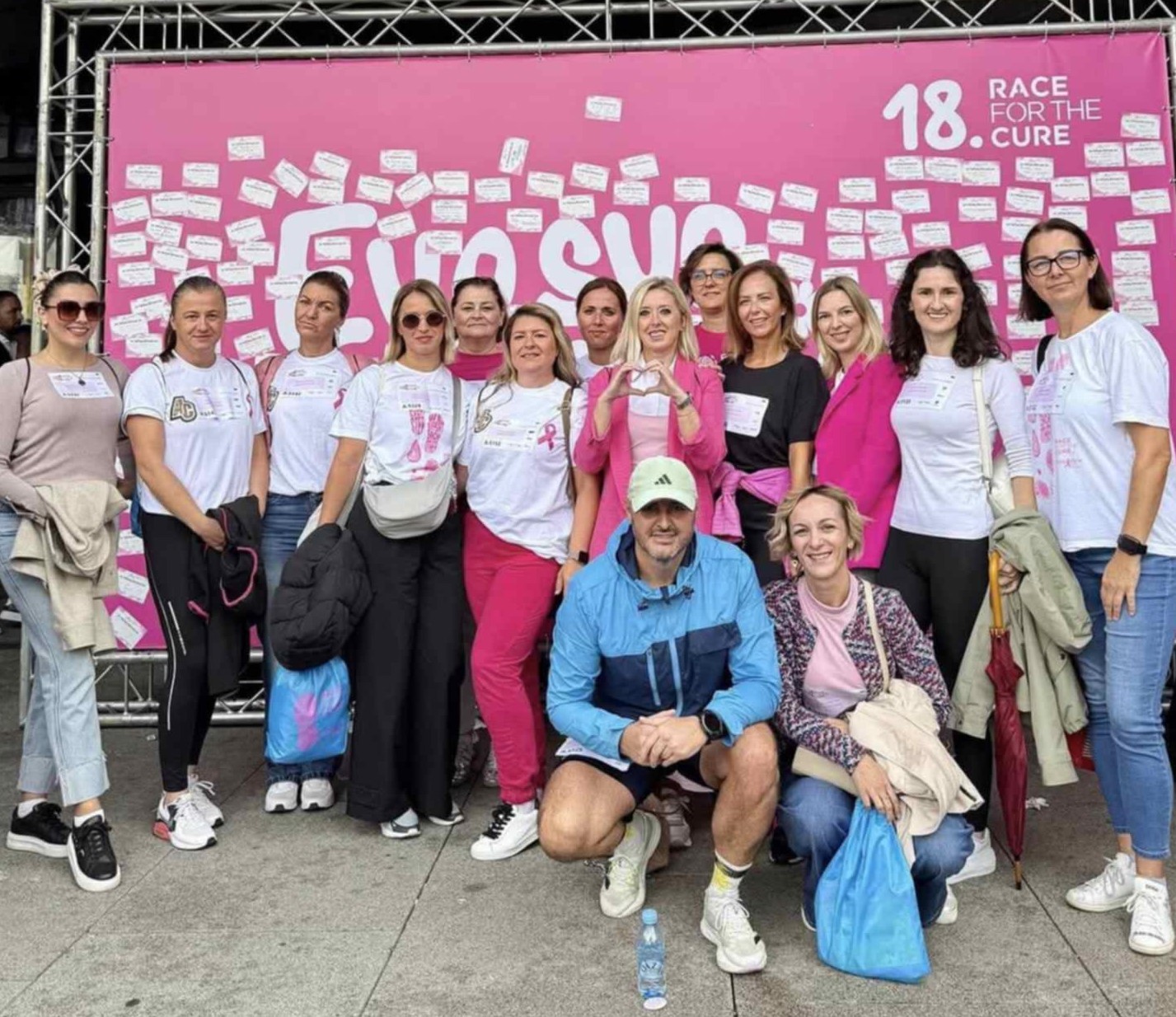 Fotografija ispod, Mirnesa Agić (osma slijeva Ili peta zdesna, stoji, “sa srcem”) i Snježana Golo (čuči, pored momka koji je vjerovatno učesnik) nastala je 27. septembra ove godine kada je održan “18. Race for the Cure”, najveći europski sportski događaj za zdravlje žena.