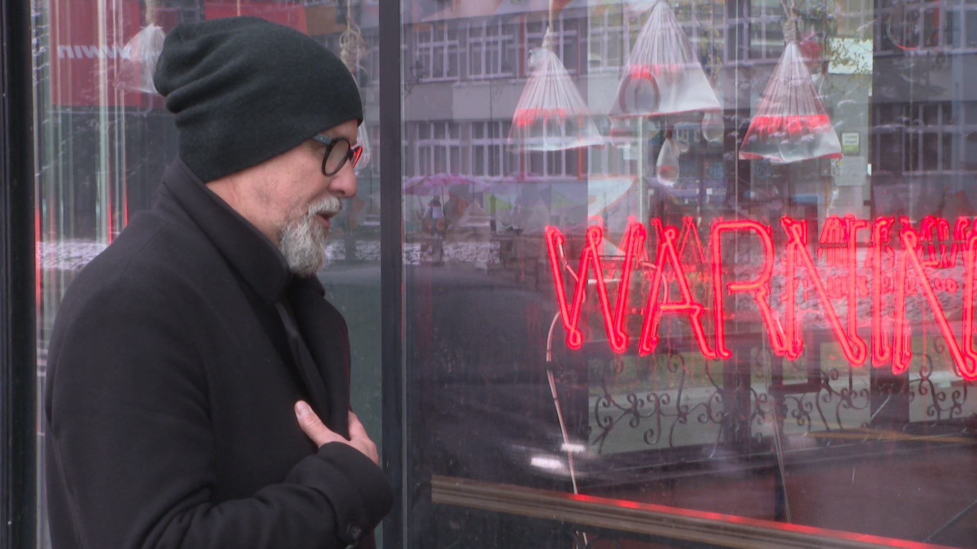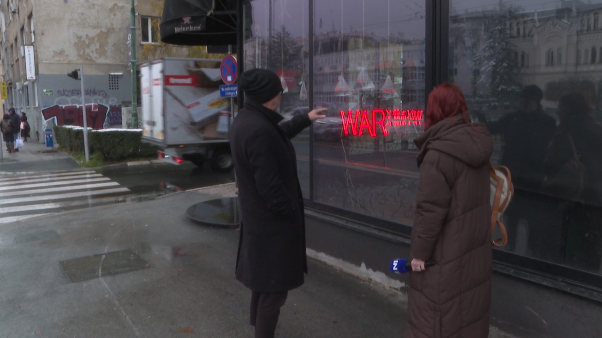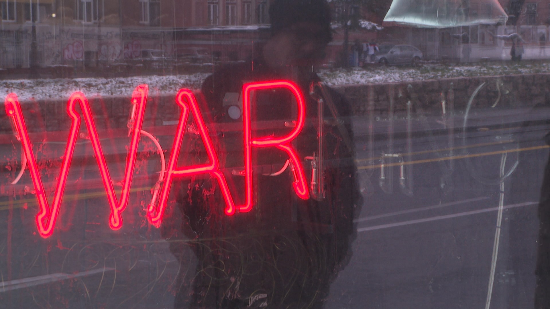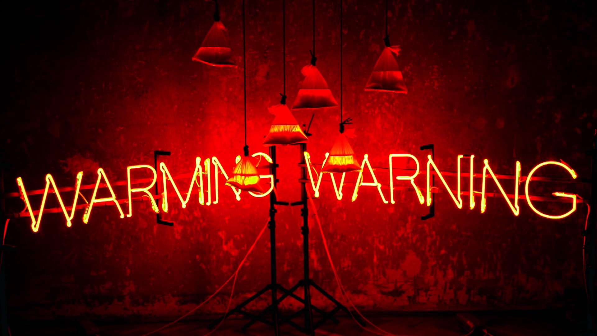 Dominantne tačke u prostoru čine neonski natpisi WAR MING i WAR NING, vizuelna upozorenja koja pulsiraju poput signalnih lampi nad globalnom stvarnošću.