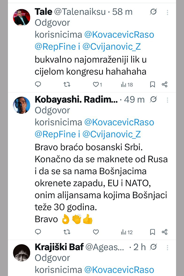 Ne stišavaju se reakcije na društvenim mrežama, nakon istupa Radovana Kovačevića, bivšeg SDP-ovca, a danas delegata SNSD-a u Domu naroda Parlamentarnoj skupštini Bosne i Hercegovine.