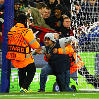 Navijač, za kojeg se ne zna da li je bodrio predstavnika BiH ili Crystal Palacea, sam je krenuo na tribinu s najvatrenijim navijačima engleskog kluba. U posljednji čas su ga zaustavili redari i udaljili od tribine.