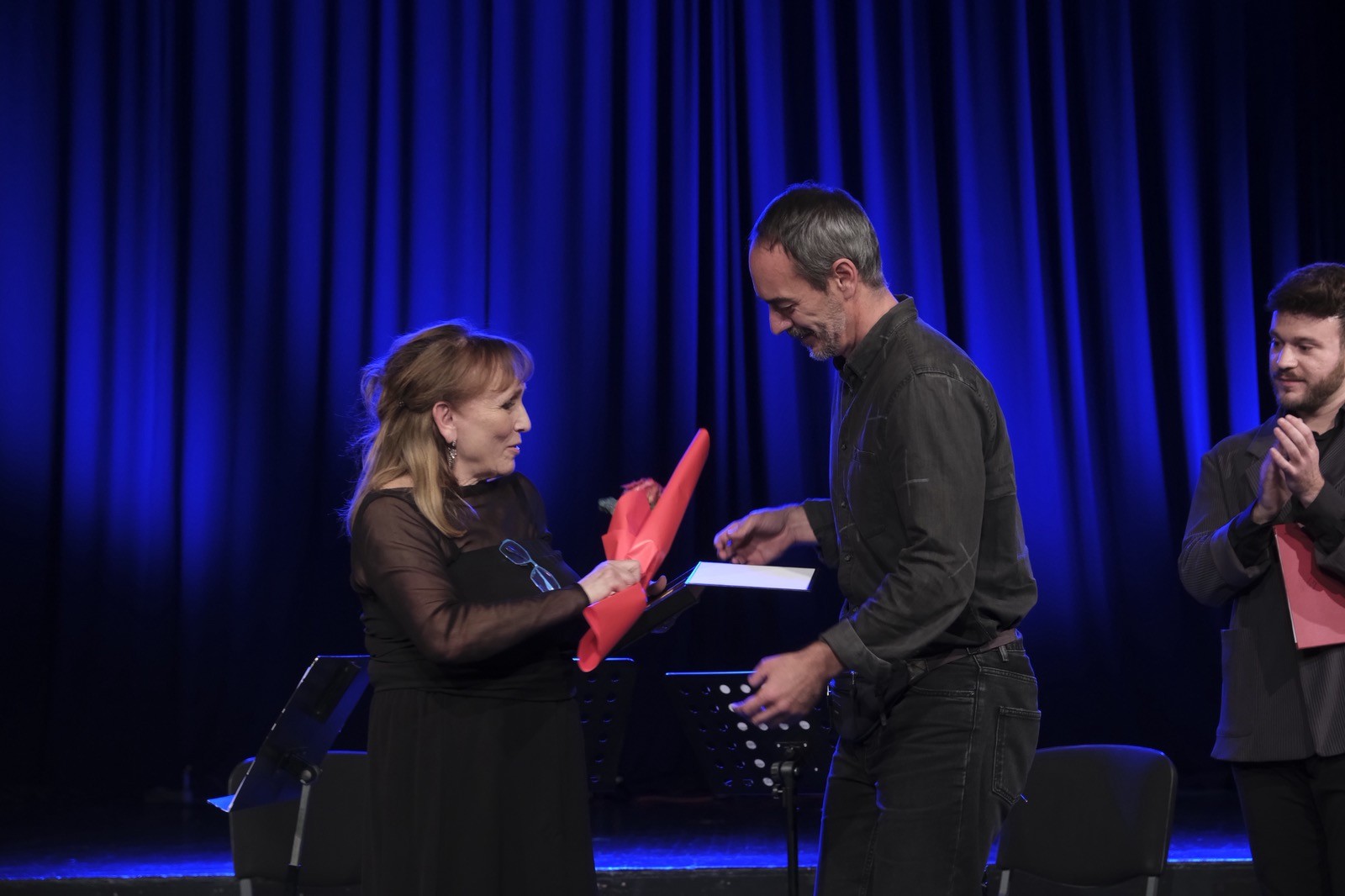 Njih tri večeras igraju ovu predstavu u Prištini, tako da nisu bile prisutne dodjeli nagrade, ali je za njih u ime koproducenta Sarajevskog ratnog teatra (SARTR) nagradu preuzela Natalia Dmitrieva.