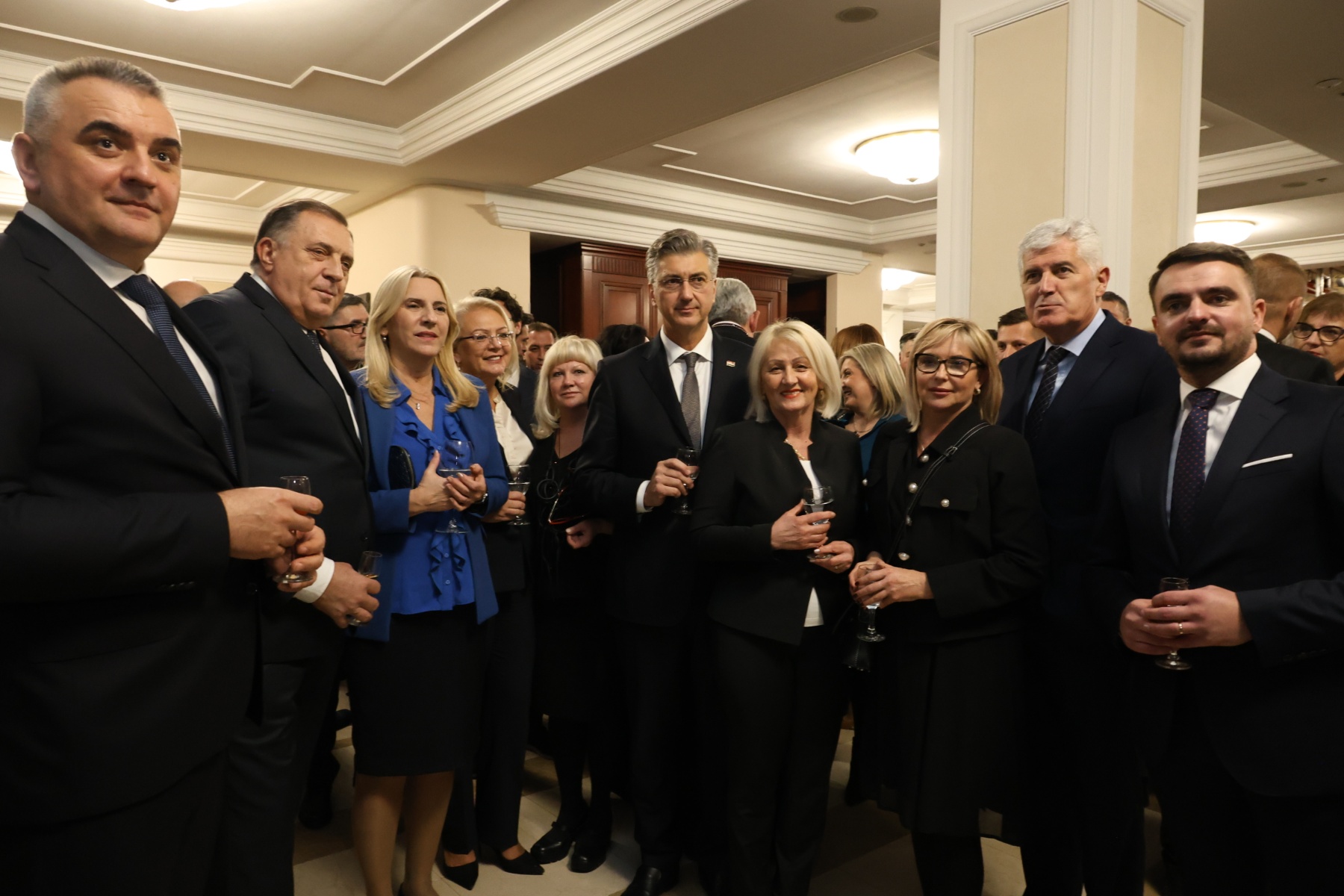 „Tu smo za vas“ poručio je Plenkoviću veoma snishodljivo mlađani gradonačelnik Banjaluke i lider Pokreta za vlast Draško Stanivuković, koji je bio toliko brz u probijanju i trčkaranju za Plenkovićem da je potisnuo čak i njegove tjelohranitelje, da bi bio prvi do hrvatskog premijera..., pa Dodik, Čović, Borjana Krišto, članovi hrvatske delegacije.