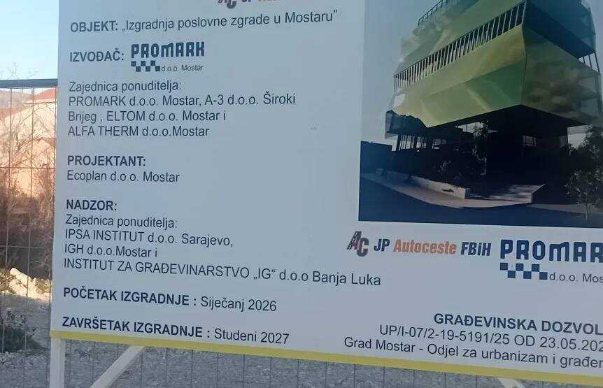 Prošle je godine ono objavilo da će u Mostaru graditi novu poslovnu zgradu. Vrijednost objekta je procijenjena na nekih 21 milion KM. Objekat bi se gradio na mjestu gdje je nekada postojao hotel Hercegovina. Ugovor je - sa svim detaljima svečanog protokola - potpisao Denis Lasić (HDZ BiH), direktor JP Autoceste F BiH.