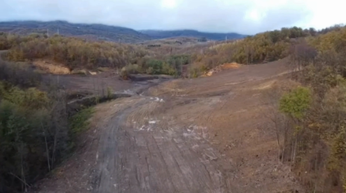 U video materijalima koji su snimljeni iznad nekadašnjeg rudnika u ovom selu vidi se sva šteta nanesena eksploatacijom uglja.